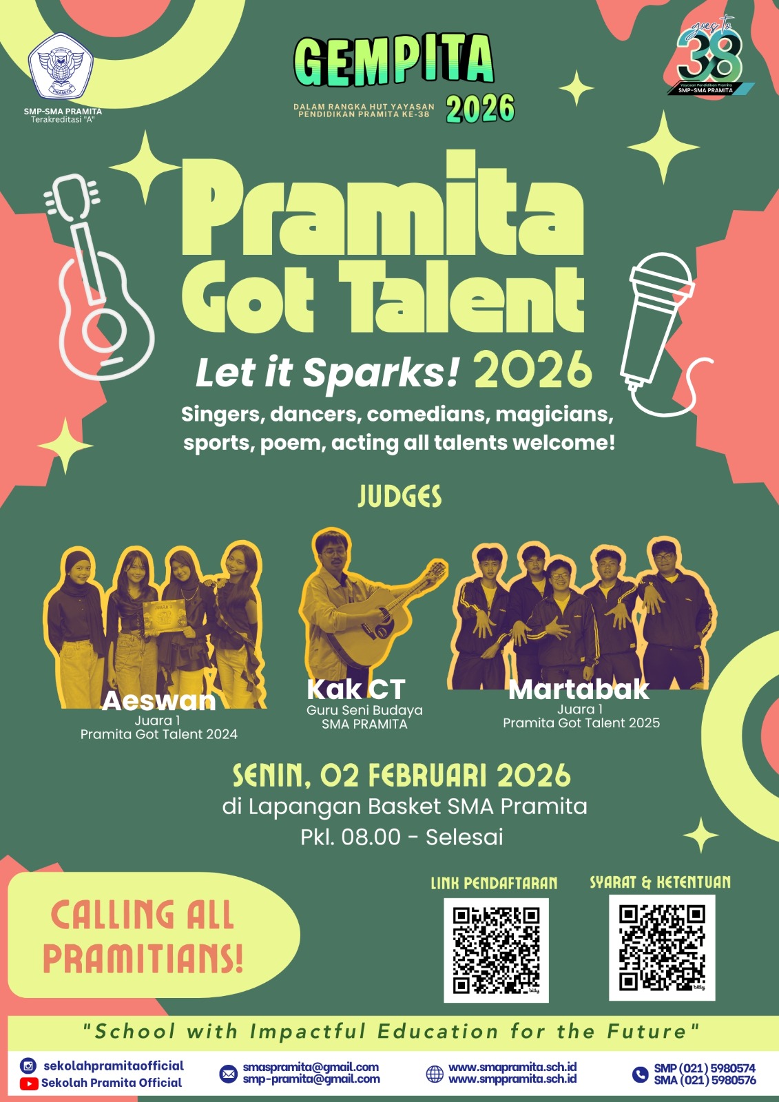 Yayasan Kependidikan Pramita sering kali mengadakan acara HUT Pramita setiap tahunnya. Seperti yang diadakan tahun ini untuk merayakan HUT ke-38 dengan nama GEMPITA. Acara tersebut digelar dengan meriah pada tanggal 2 Februari 2026. Bersamaan dengan itu, diadakan juga acara Pramita Got Talent 2026 dalam rangka HUT Pramita. Banyak siswa/siswi dari kalangan SMP sampai SMA yang menampilkan bakat mereka seperti bernyanyi, memainkan alat musik, silat, tari, dan sebagainya. Para peserta yang berhasil menjadi pemenang juga mendapatkan hadiah berupa uang tunai atau voucher. Para siswa/siswi, guru, atau staff sekolah lainnya pun turut memeriahkan acara GEMPITA dengan bahagia.