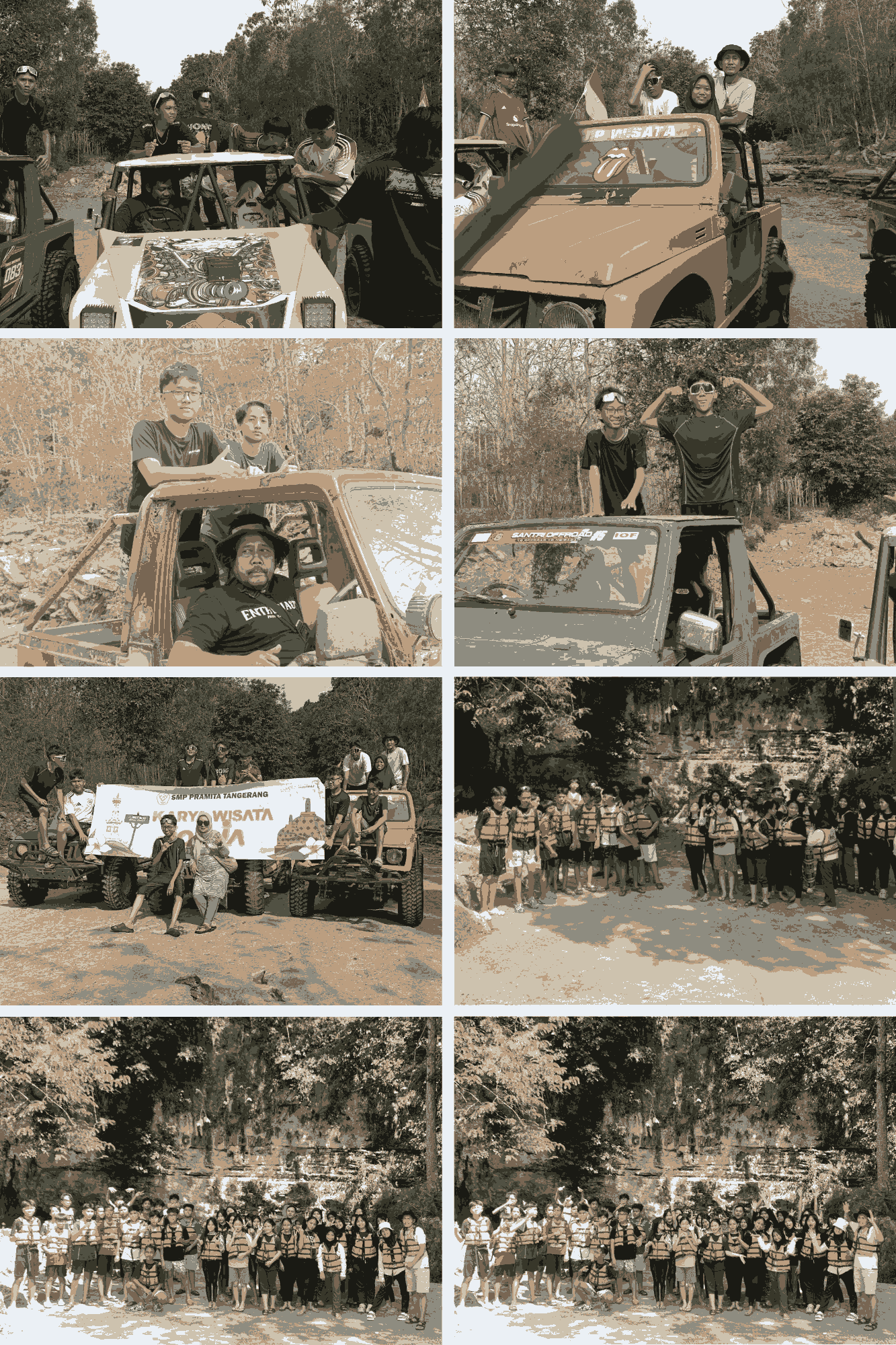 Siang hari, perjalanan dilanjutkan menuju Goa Pindul, salah satu destinasi wisata alam populer di Gunungkidul. Di sini, rombongan menikmati pengalaman seru, yaitu menyusuri goa dengan ban karet di atas aliran sungai bawah tanah. Suasana gelap goa berpadu dengan cahaya yang masuk dari celah-celah atas membuat pengalaman ini terasa unik. Rasa lelah terbayar dengan keceriaan dan tawa siswa selama menyusuri aliran air.